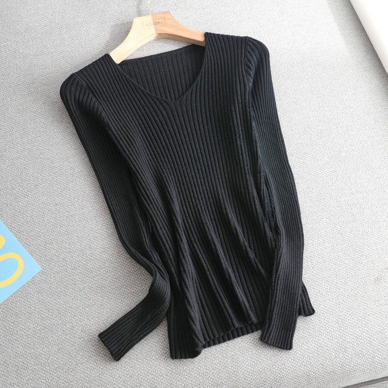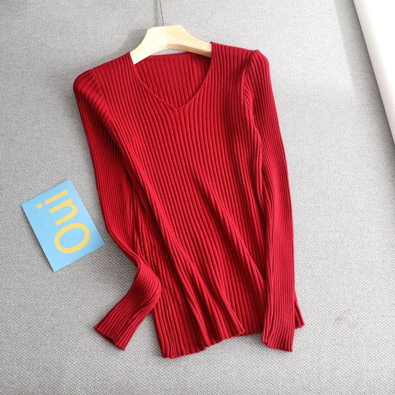 1 *Basic V-neck Solid Sweater Pullover Women Female Knitted Sweater