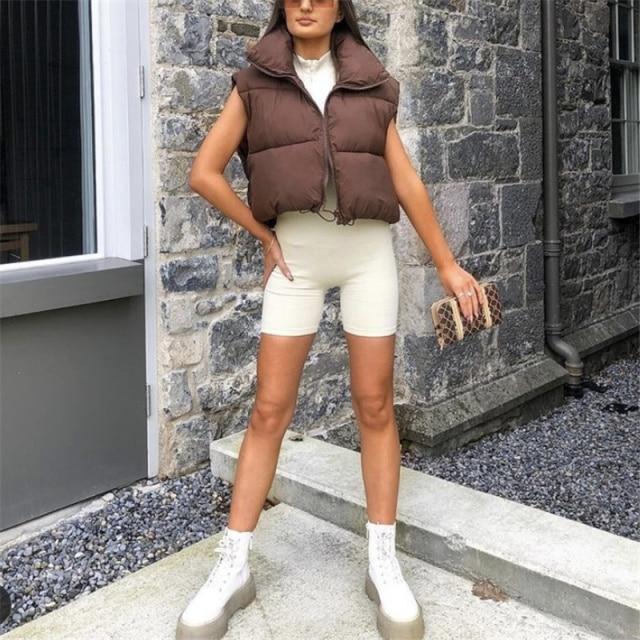 1 *Casual Woman Short Puffer Vest Warm Double-Side Outwear