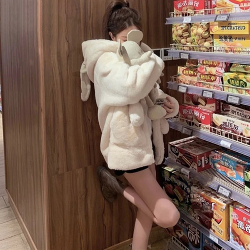 Hop into style and comfort this spring with our adorable Spring Fluffy Jacket with Rabbit Ears. This charming faux fur hoodie features cute rabbit ears, a cozy design, and practical zipper sleeves, making it a perfect blend of playful and practical. Ideal for adding a touch of whimsy to your spring wardrobe, this jacket is both a fun and stylish choice for fashion-forward individuals.