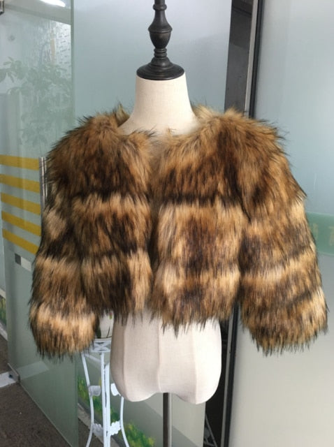 1*Winter Jacket Big Fluffy Artificial Faux Fur Coat Thick Warm Outerwear