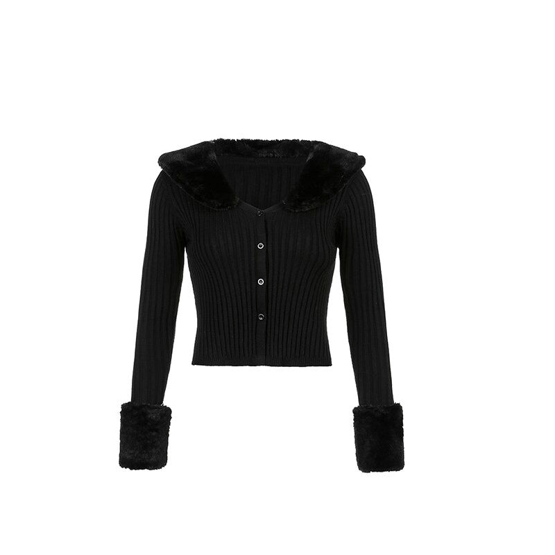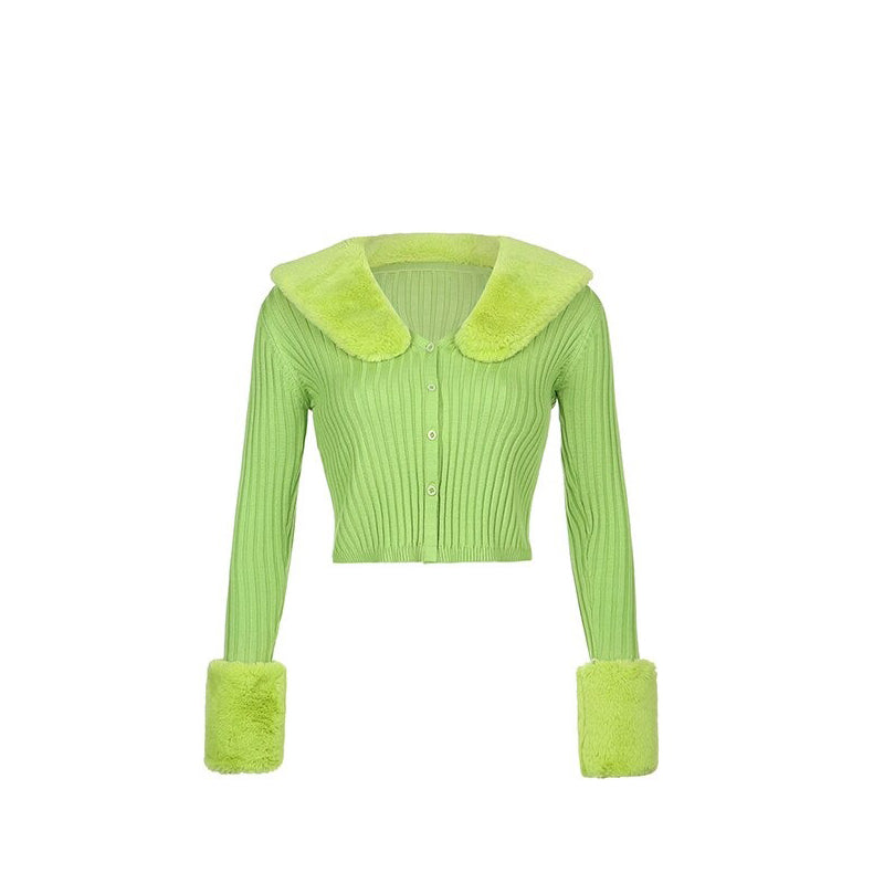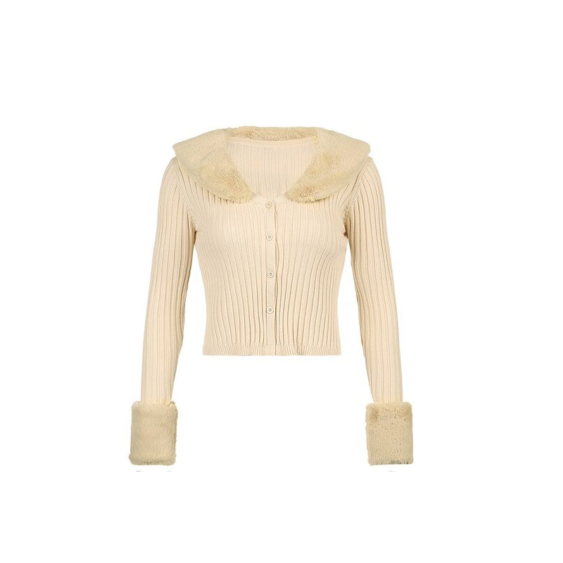 Woman Cardigan Sweaters With Fur Trim Collar Women Cropped Sweater