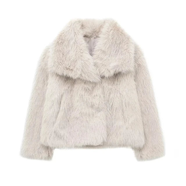Women Casual Faux Fur Jackets Turn Down Collar Elegant Thick Coat