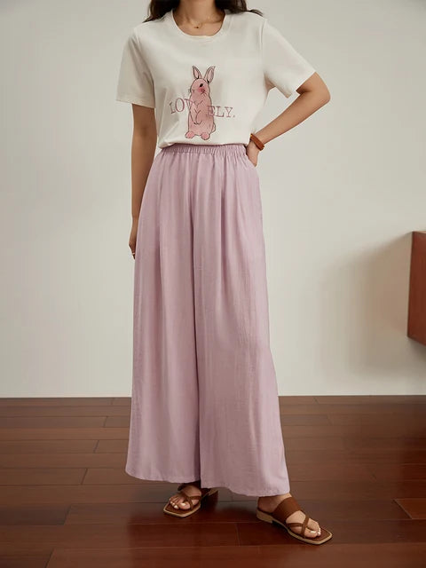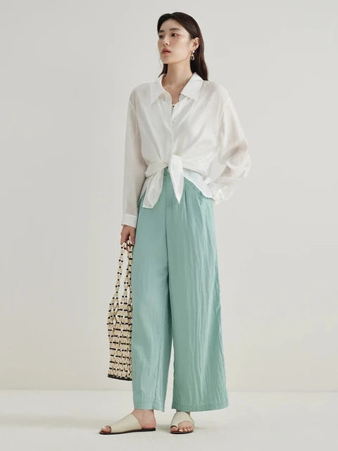 Women Thin Trousers Cool Draped Long Pants Elastic Waist Trouser
