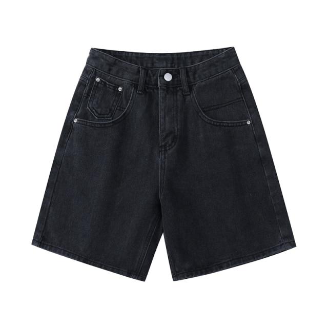 High Waist Denim Shorts Women Loose Ladies Button Wide Leg Shorts