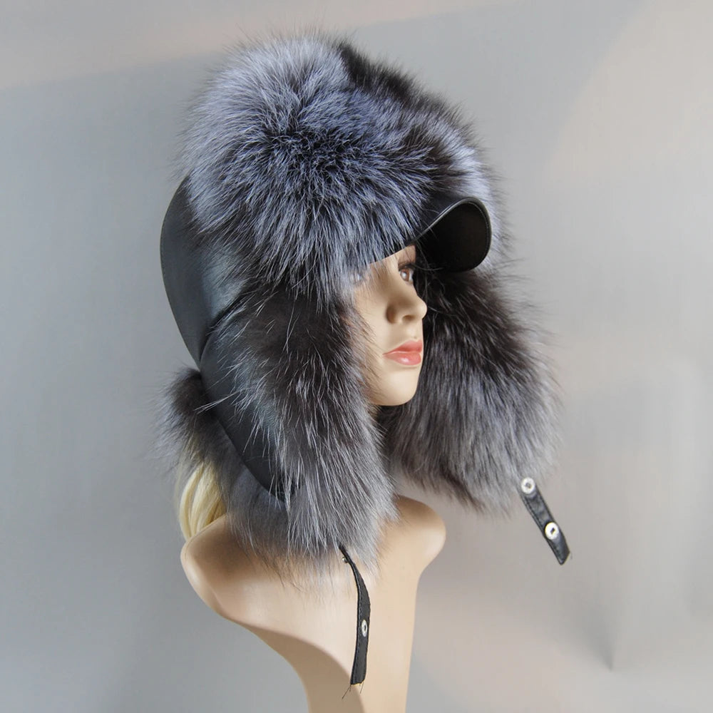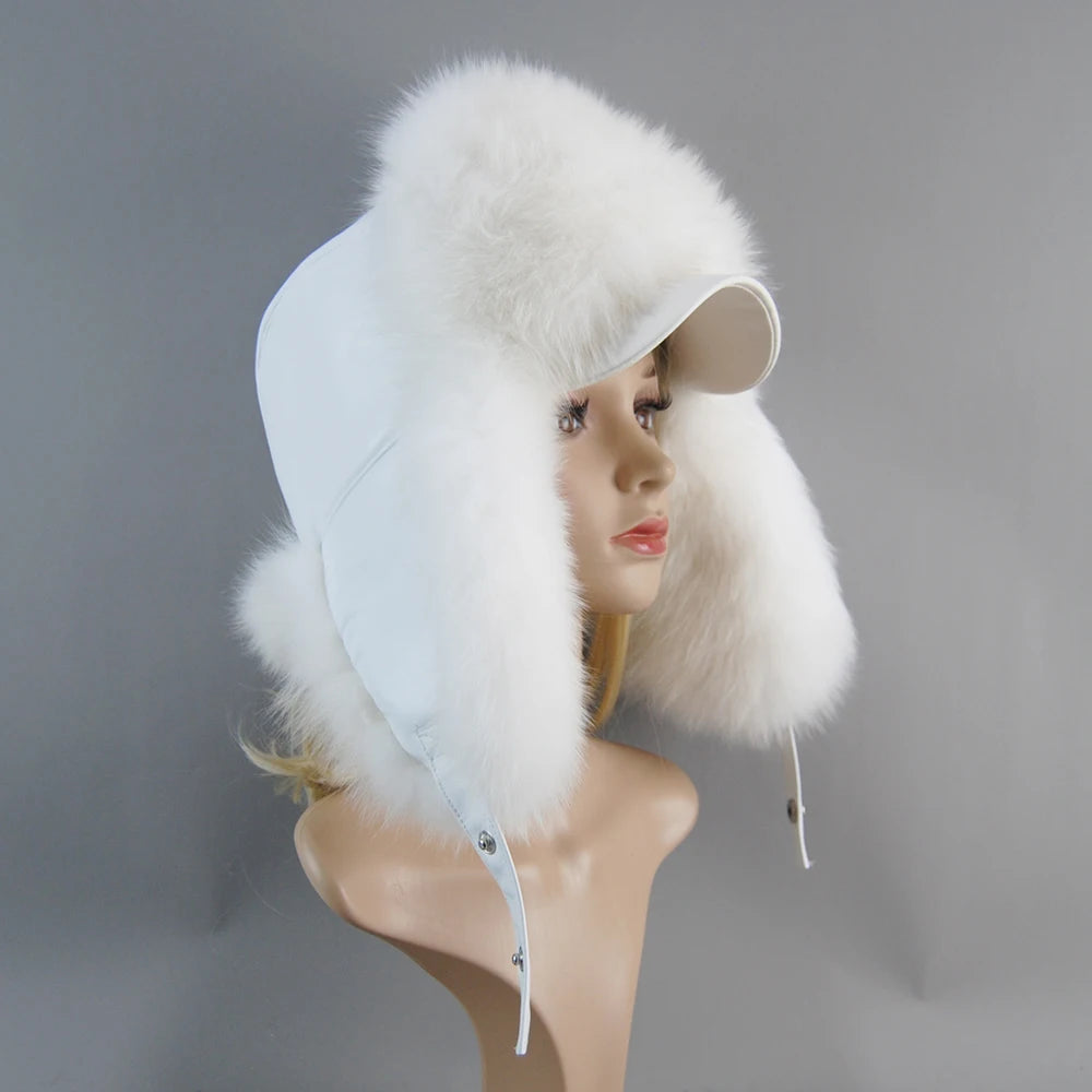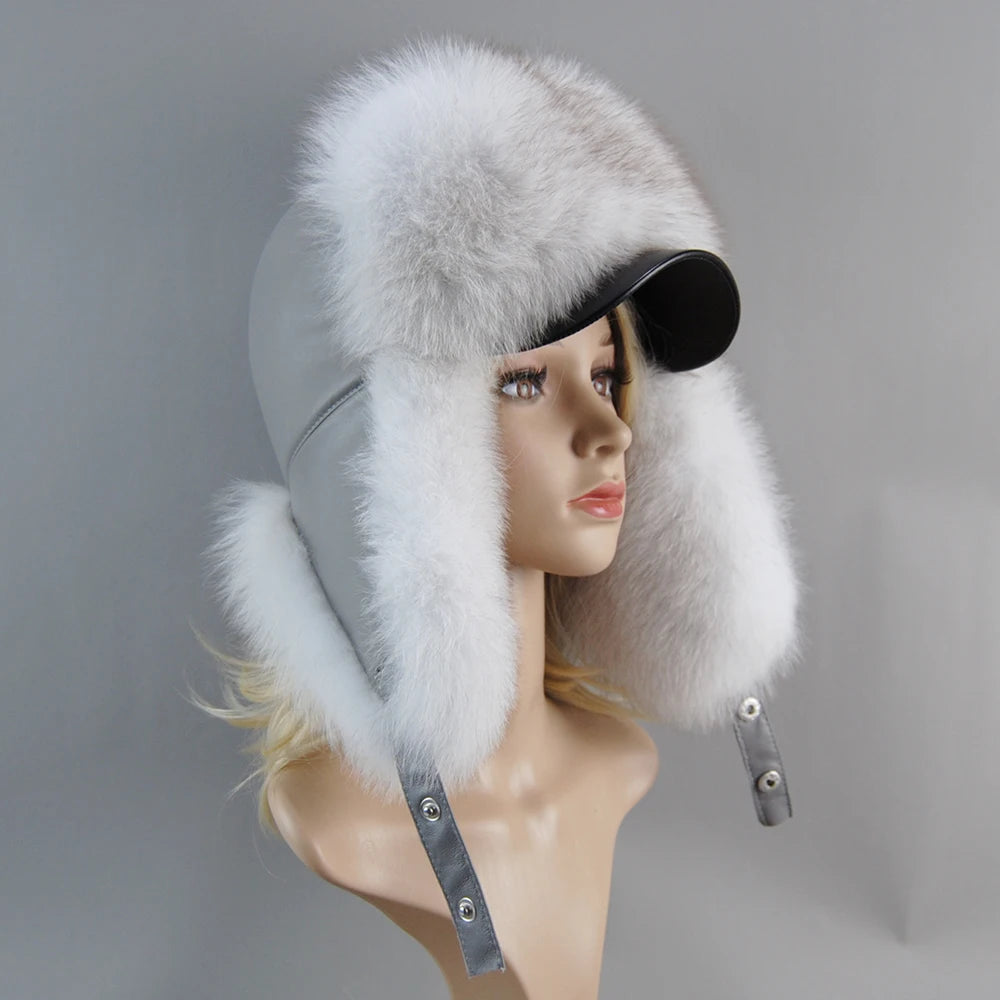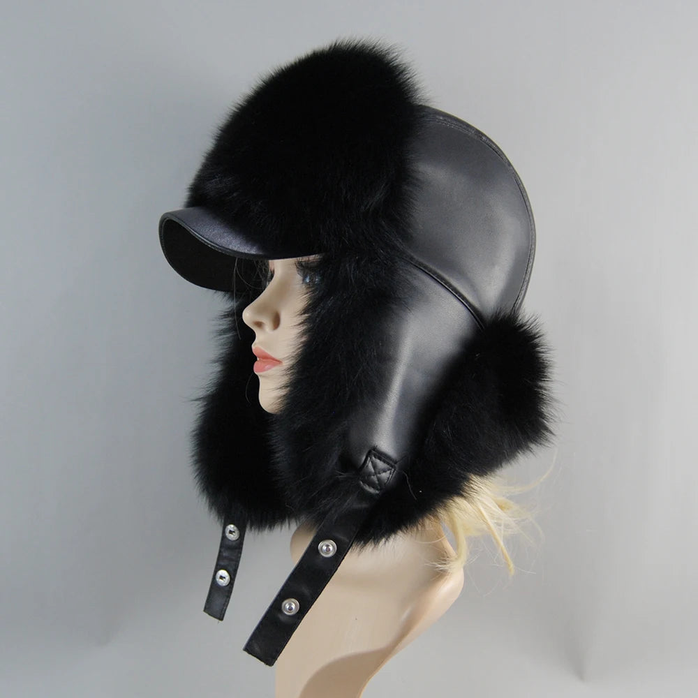 Real Leather Fox Fur Women Hat Snow Skiing Earflap Winter Outdoor Cap