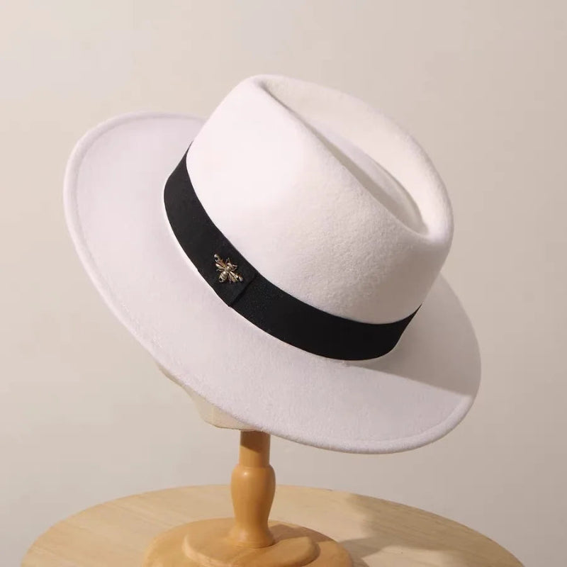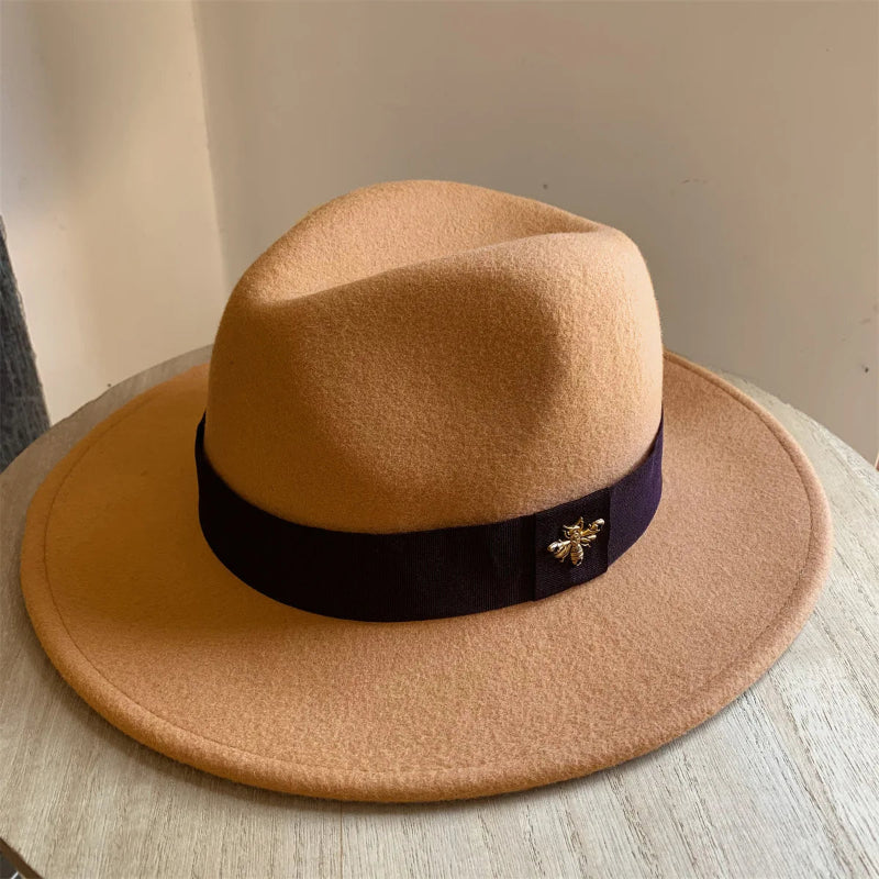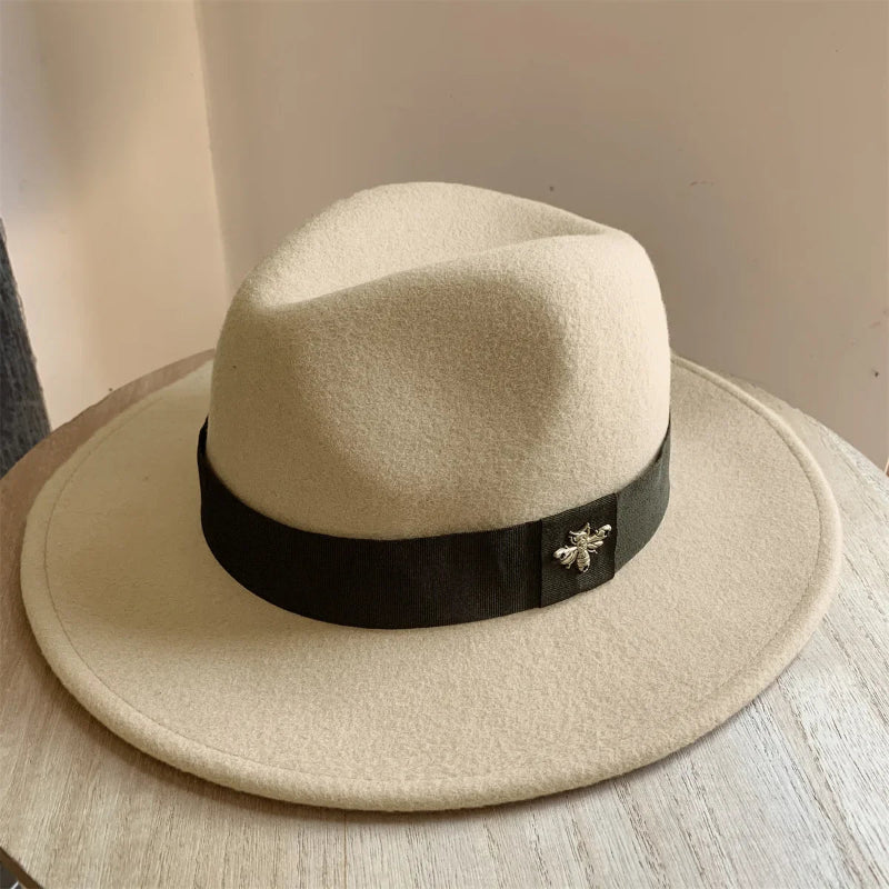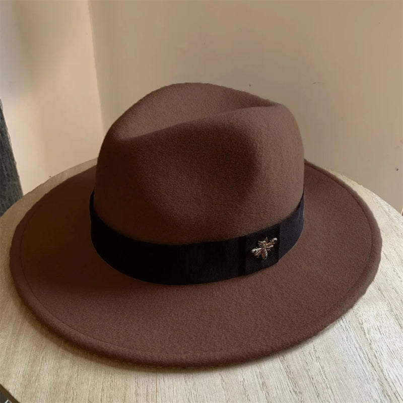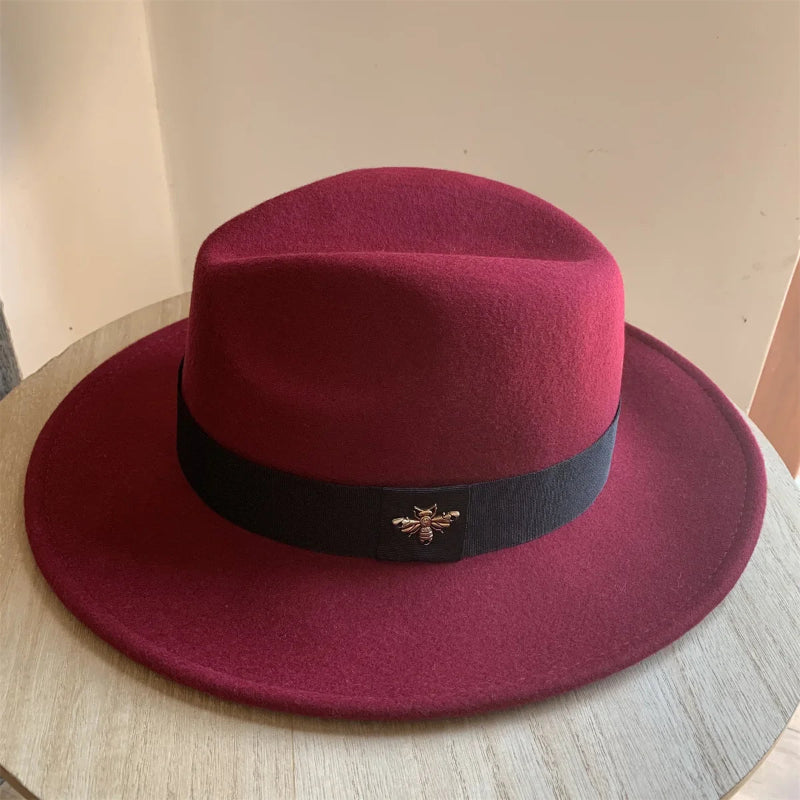 Add a touch of sophistication to your cold-weather wardrobe with this Warm Windproof Wool Felt Top Winter Hat Outdoor Fashion Hat from Arimonz, designed with a stylish bee decor accent for a charming and elegant finish. Crafted from premium wool felt, this warm and windproof jazz-style cap offers both comfort and fashion, perfect for autumn and winter wear.