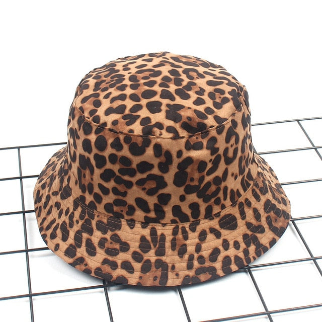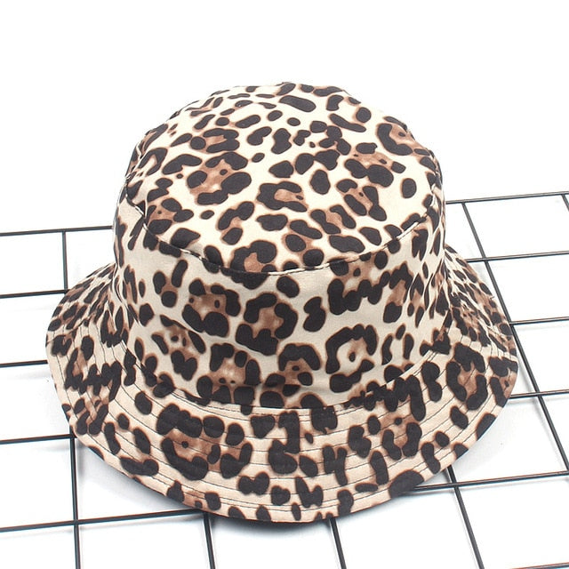Leopard Print Bucket Hat Reversible Hat Outdoor Travel Cap
