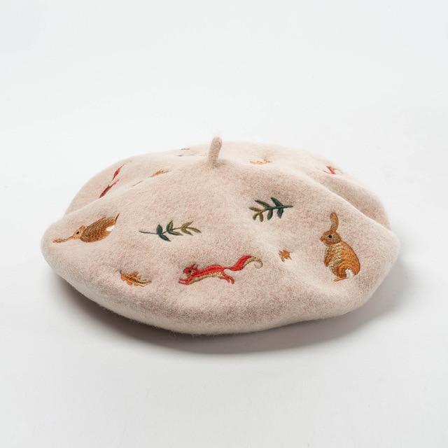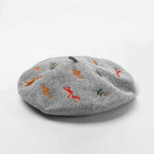 Beautifully embroidered acrylic beret that will be a great accessory for the winter season. This Arimonz nature inspired beret is the perfect accessory to keep you stylish and warm this winter. Made of a lightweight, fuzzy material, it will go well with both casual and more formal wear. Pair it with your favorite coat or jacket for a cute look that everyone will love.