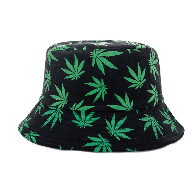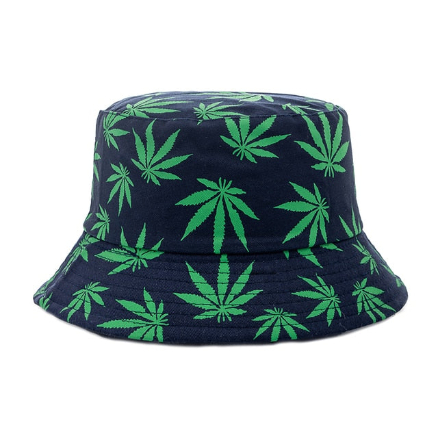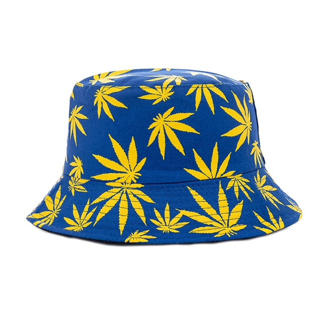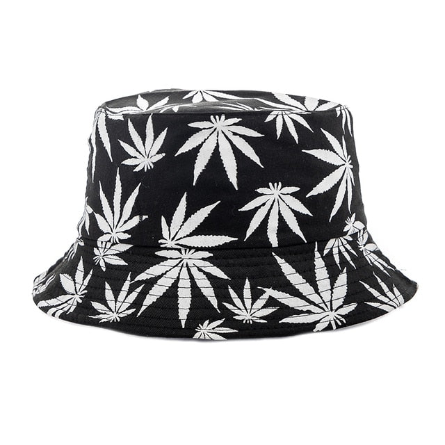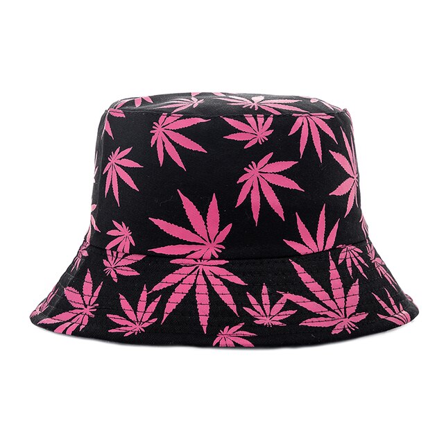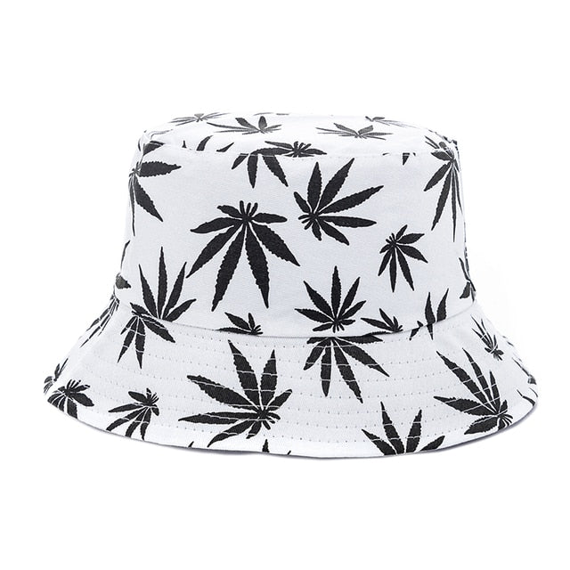 Summer Bucket Hats Reversible Leaves Printing Women Cap Outdoor Hat