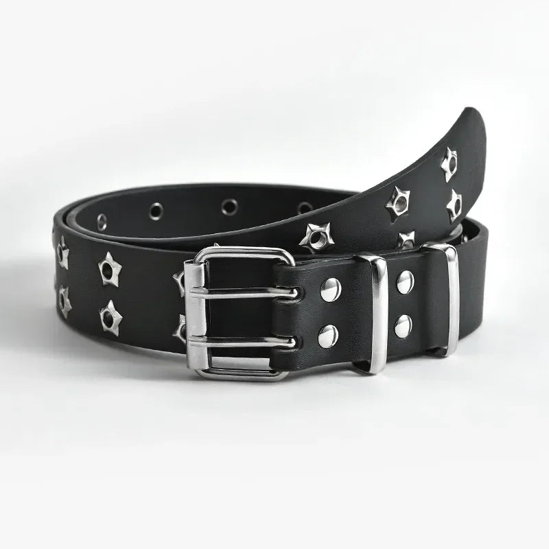 Punk Style Chain Belt Adjustable Hollow Star Double Metal Buckle