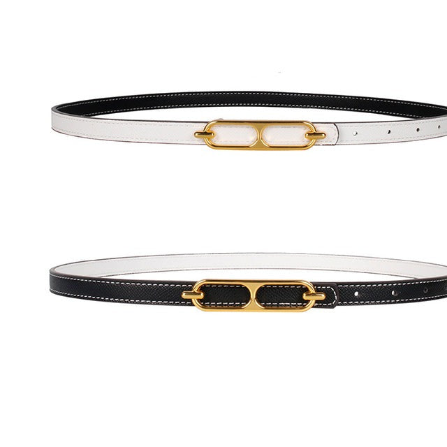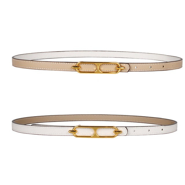 These fashionable and unique double-sided use of women's leather belt is a decorated fashion jeans belt from Arimonz that has 2 sides, and 2 modes of use. One side with the hook can be used as a trendy belt, and the other side with the holes is more convenient to wear jeans. A stylish accessory for your outfit!