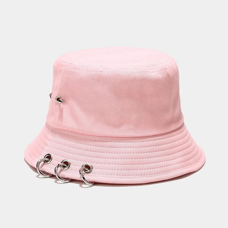 Punk Spiked Rivet Bucket Cap with Metal Rings Panama Streetwear Cap
