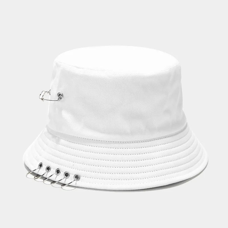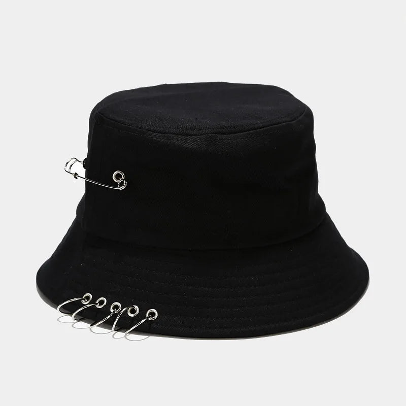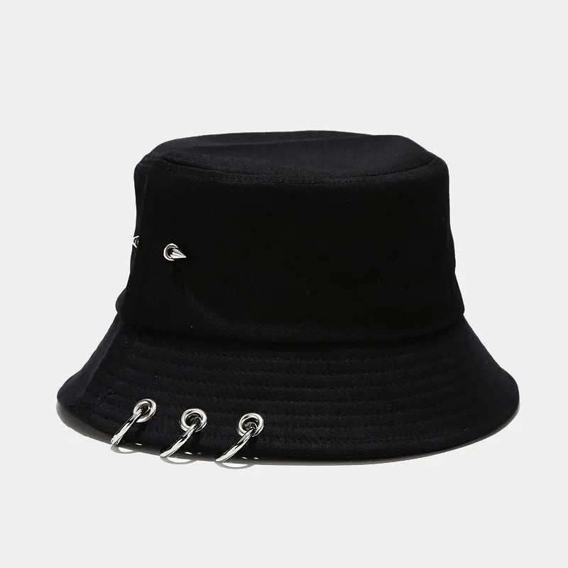 1 *Punk Spiked Rivet Bucket Cap with Metal Rings Panama Streetwear Cap