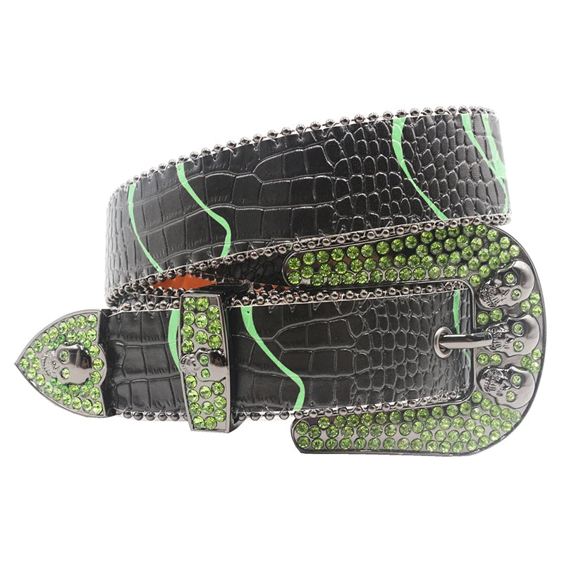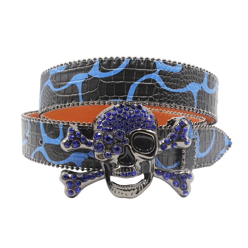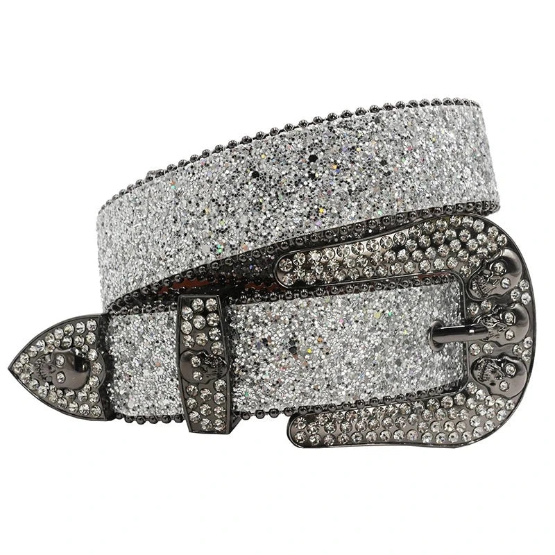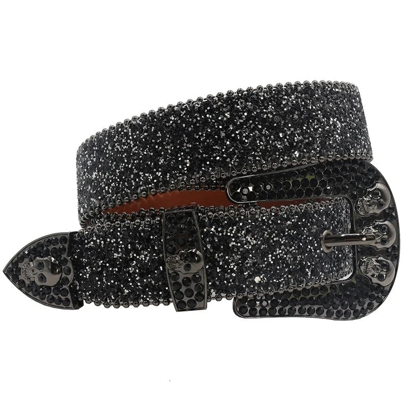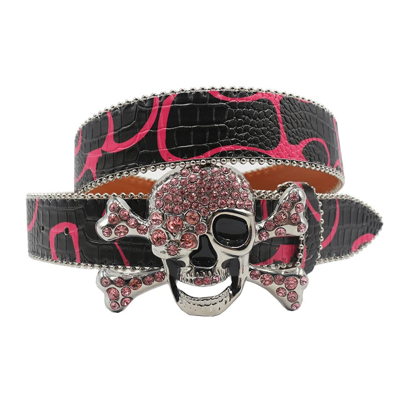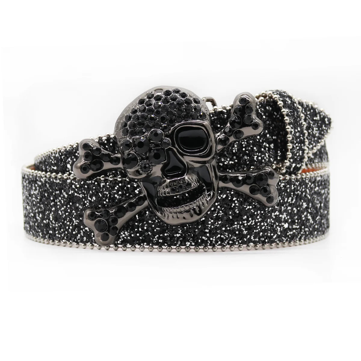 Unleash your bold and edgy side with the Skull Rhinestone Belts Crystal Studded Diamond Bling Bling Belt. This statement accessory combines a rebellious skull design with the glamorous sparkle of crystal rhinestones, creating a unique blend of punk and luxury. Crafted with meticulous attention to detail, it's an ideal addition to your wardrobe for any occasion where you want to shine and show off your daring style.