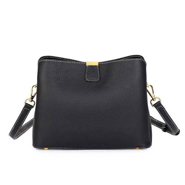 Women Genuine Leather Bag Bucket Handbag Lady Casual Shoulder Bag