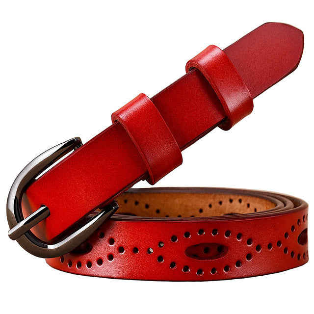 Women Hollows Genuine Leather Belt Woman For Jeans Pin Buckle Belts