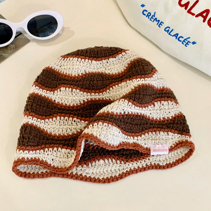 Stay warm and stylish through the colder seasons with this Gradient Stripe Woolen Bucket Hat Handmade Plush Knitted Fisherman Hat from Arimonz. Designed with eye-catching gradient stripe patterns, this hat adds a playful and cheerful touch to your autumn and winter outfits.