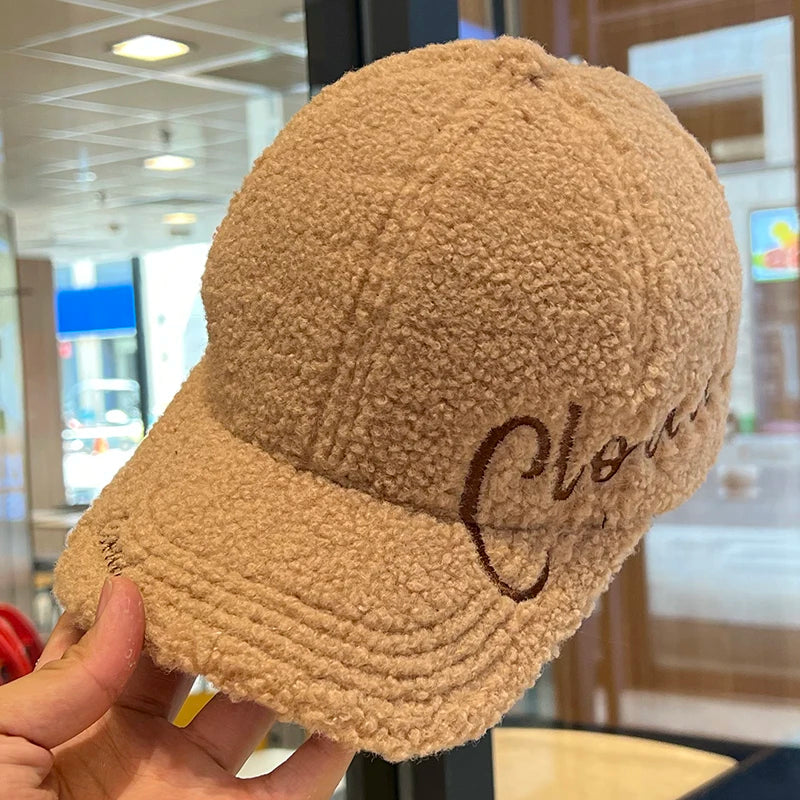 Fashion Embroidered Letter Warm Baseball Cap Cold Proof Casual Cap