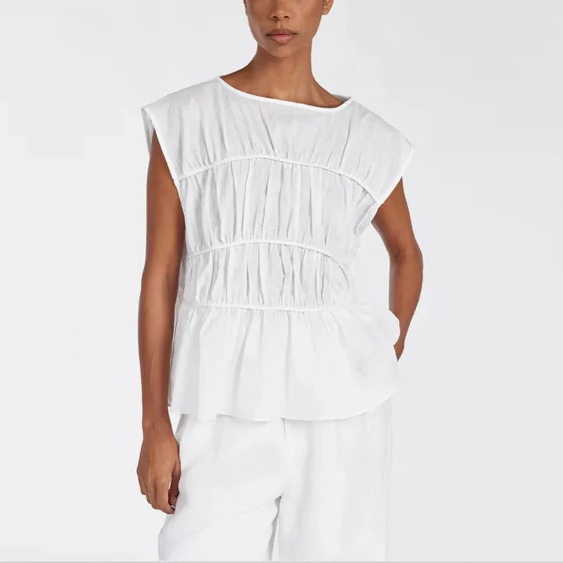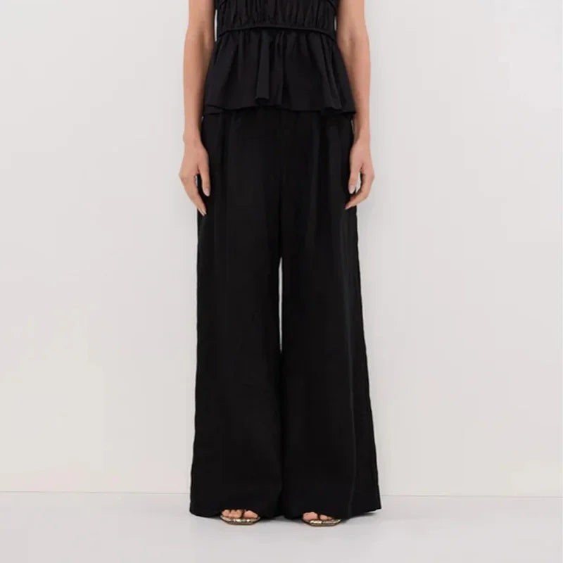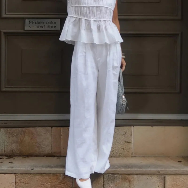 1 * 2pcs Solid Sleeveless Top With High Waist Pleated Pants Loose Outfit