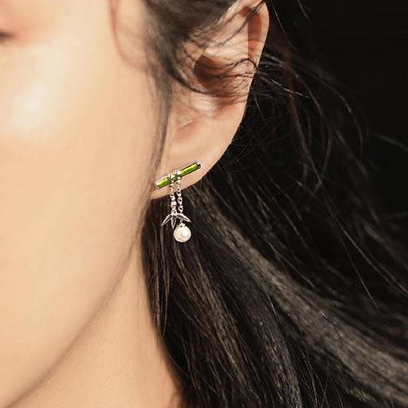 Bamboo Dangle Earring With Pearl Retro Style For Women Fine Jewelry