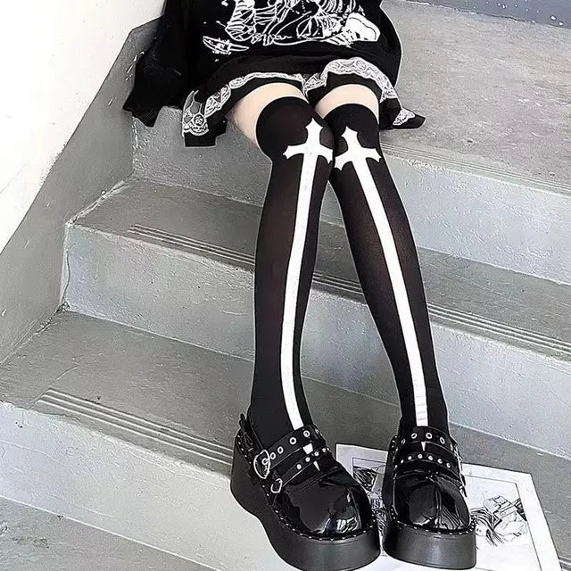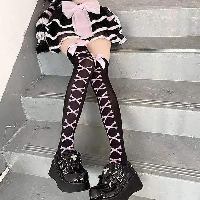 Embrace your gothic Lolita style with our Classic Lolita Black Goth Cute Stockings. These thigh-high socks are designed to add a touch of elegance and charm to your outfit, combining classic gothic elements with a cute Lolita aesthetic. Perfect for making a bold fashion statement, these long socks are a versatile addition to any wardrobe.