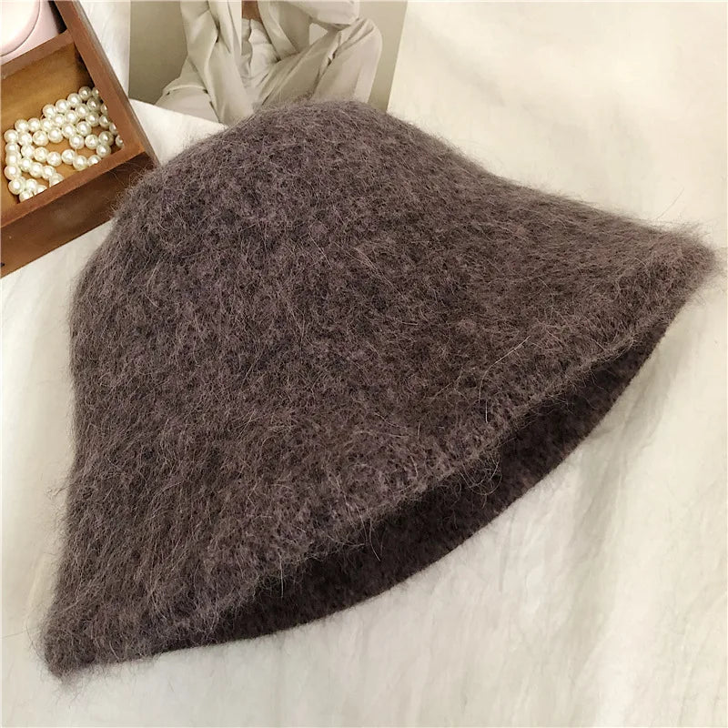 Autumn Winter Wool Fur Cap for Women Soft Warm Wool Basin Bucket Hat