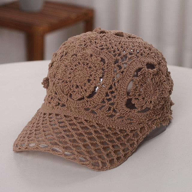 Hand Woven Baseball cap Women Handmade Flower Hollowed Thin Cap
