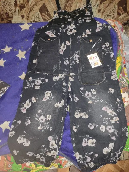 1 * Loose Jeans Jumpsuit Women Casual Baggy Pants Floral Denim Overalls