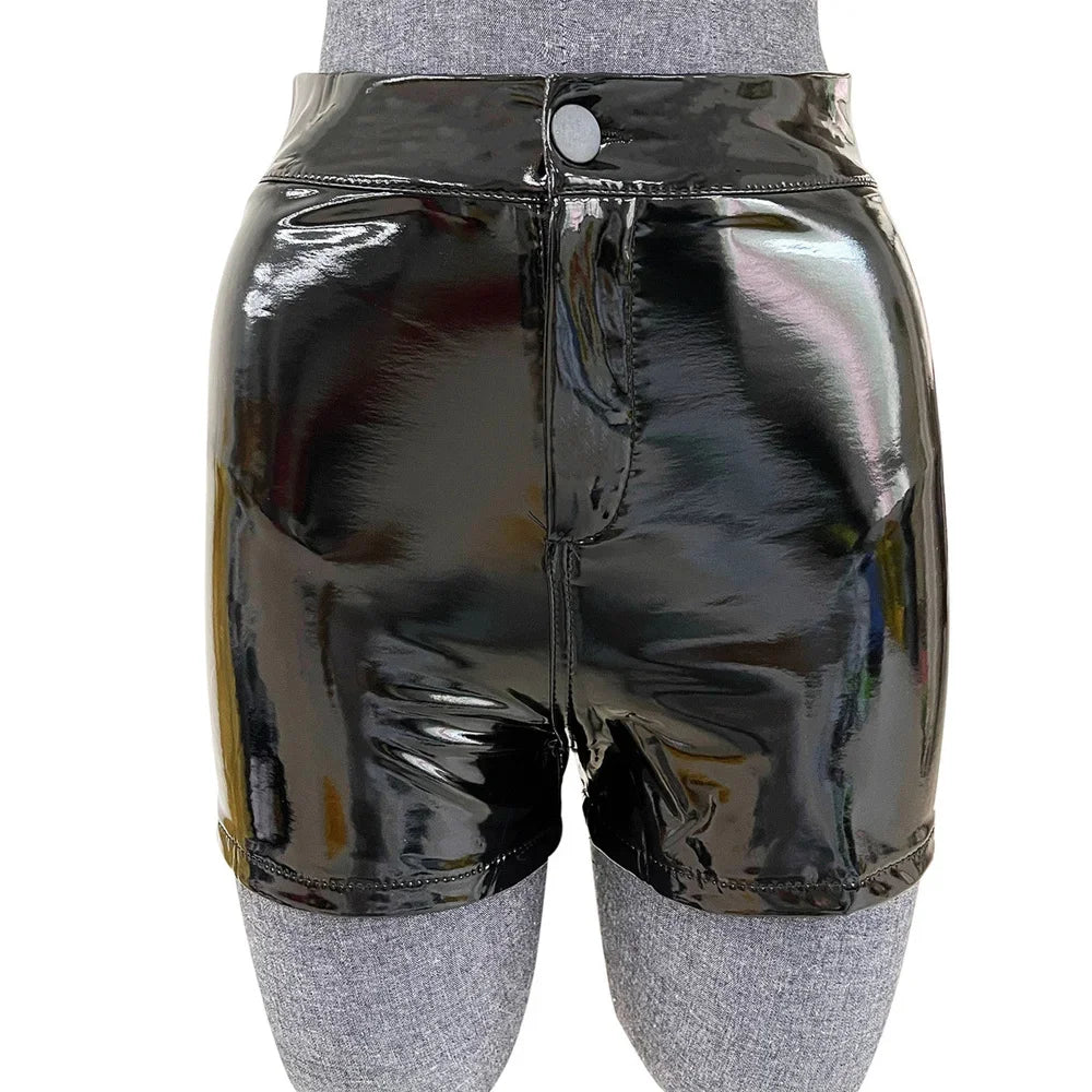 1 * Elastic High Waist Wet Look Faux Leather Short Pants Latex Goth Shorts