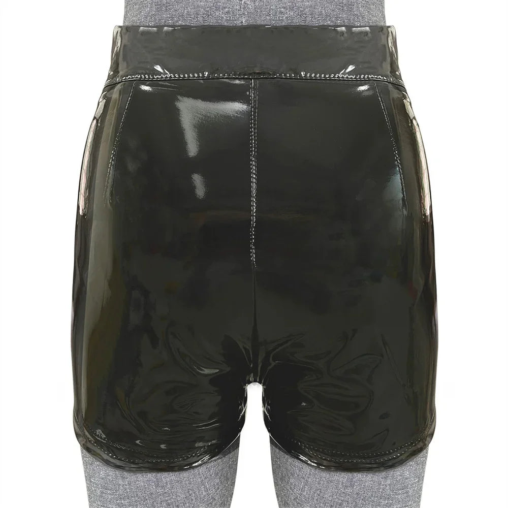Elastic High Waist Wet Look Faux Leather Short Pants Latex Goth Shorts